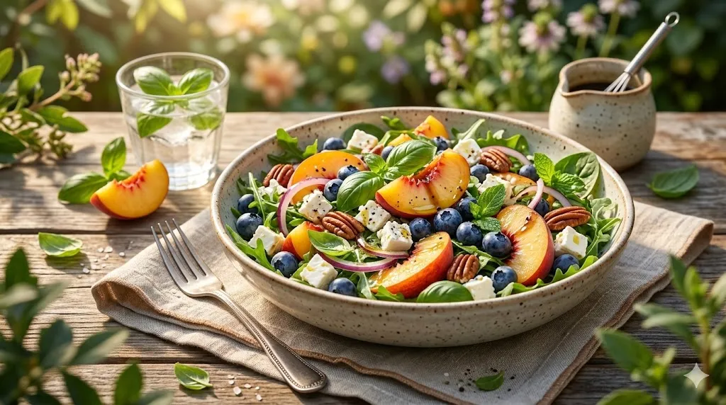 Welcome to a delightful journey of flavors with our Refreshing Blueberry Peach Feta Salad! This salad is not just a
